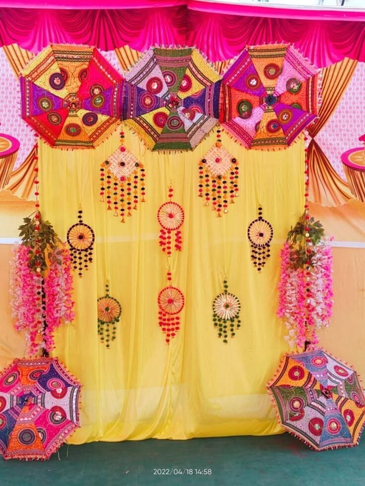 Explore our wide range of designer hanging decorations crafted for weddings, mandap décor, haldi functions and festive events. Available in floral, umbrella, latkan and luxury crystal styles.